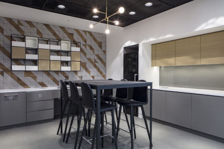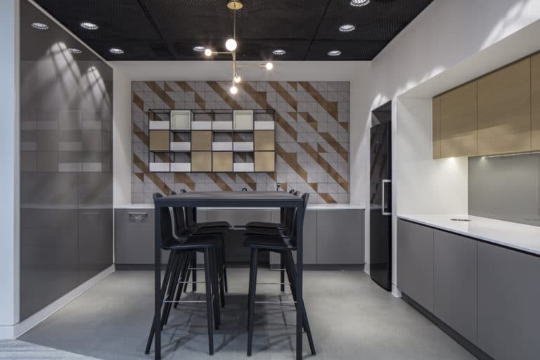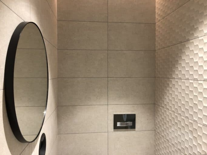BW: Workplace Experts instructed Konix to complete 3D textured tiling to WCs, and design, manufacture, and install a bespoke tiled feature wall, for Bristows.