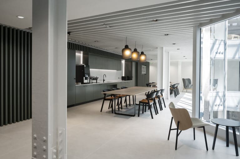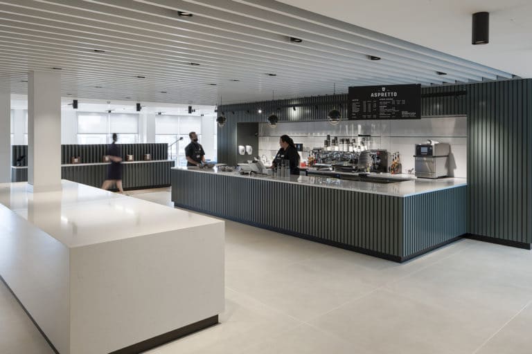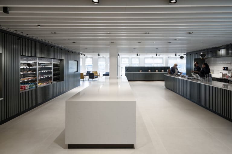 BW instructed Konix to supply & fit large format tiling to floors, feature tiling to splashbacks, and external pavers for Quilter in London.