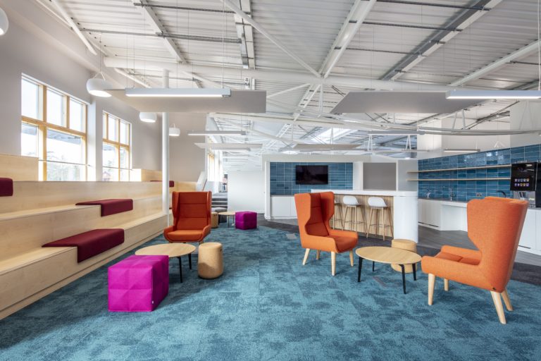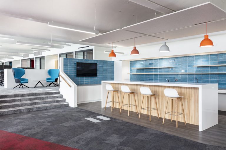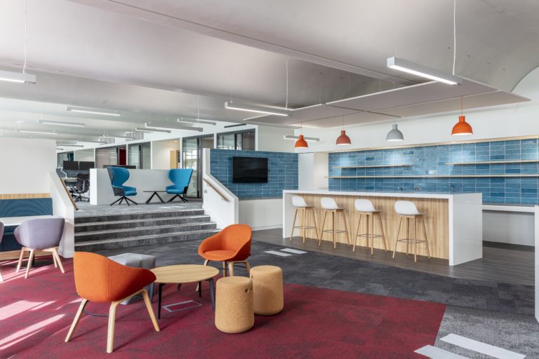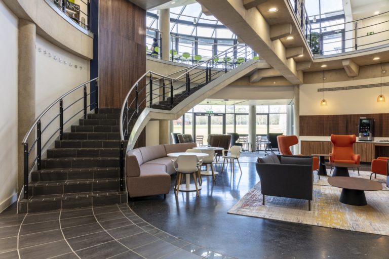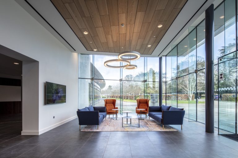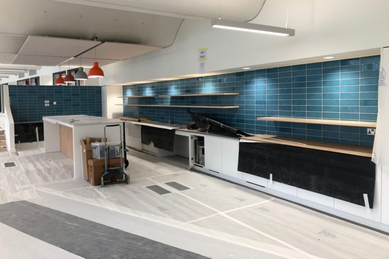 BW instructed Konix to supply & fit large format tiling to floors, stone tiling to a large feature wall, and tiling to splashbacks, for SAS in Marlow.